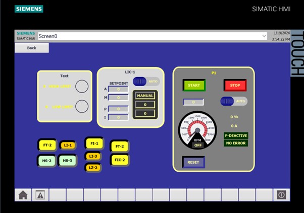 - Developed PLC logic (LAD) & HMI visualization.