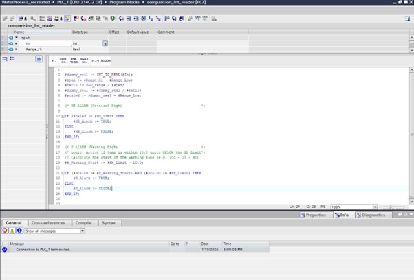 Developed a closed-loop water control system using Siemens S7-1500 and TIA Portal V16.